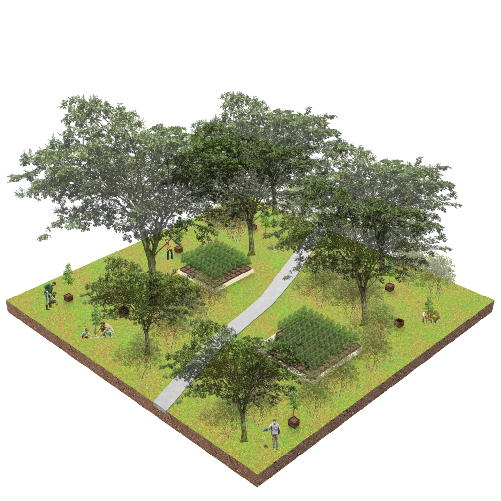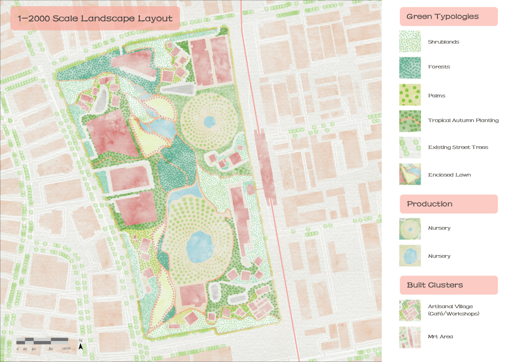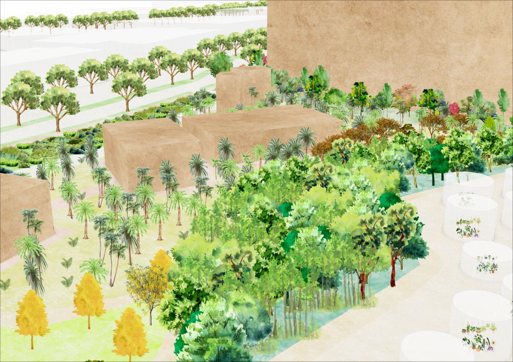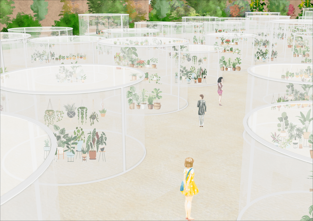 To hybridise aspects of industry and recreation, nurseries are placed as production centres within the site, cultivating a range of ornamentals that people could purchase and bring home.