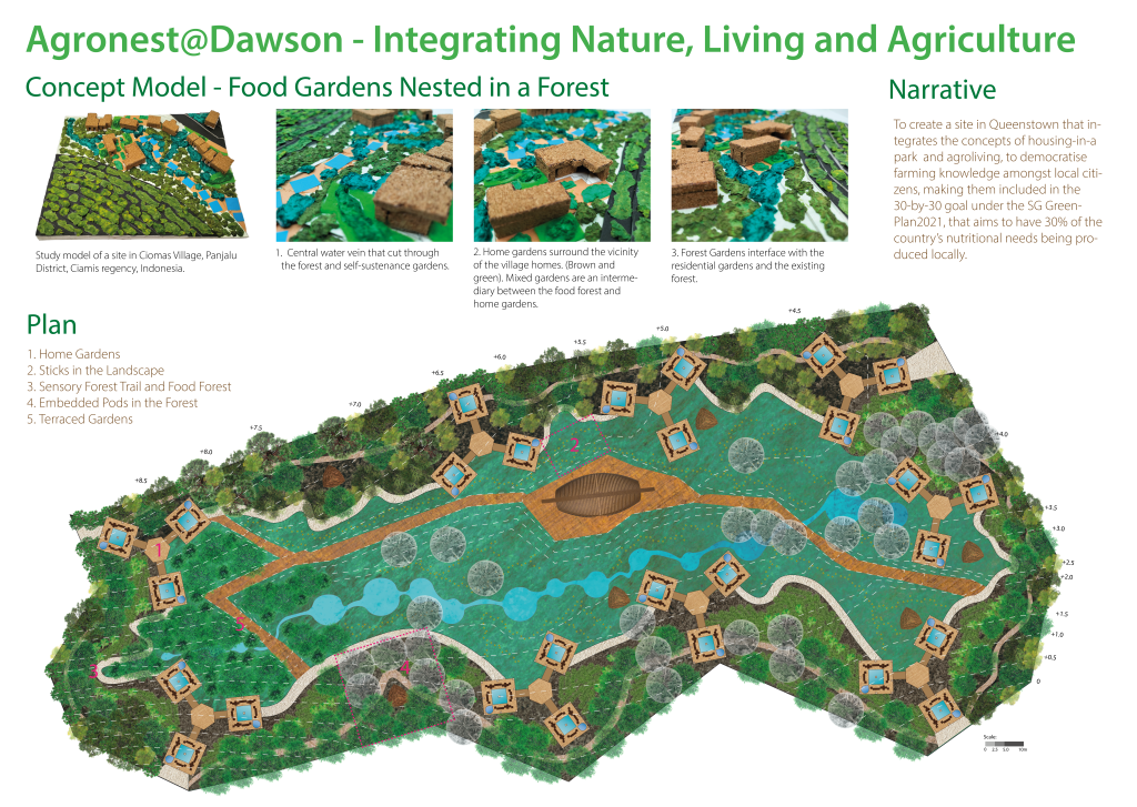 Creating a site in Queenstown that integrates the concepts of housing-in-a-park and agro-living, to democratise farming knowledge amongst long citizens, making them include in the 30-by-30 goal under the SG Green Plan 2021, that aims to have 30% of the country’s nutritional needs to be produced locally by the end of 2030.