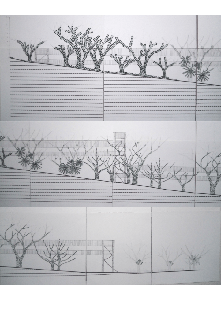 Handsketching is used to illustrate plant forms and arrangements more freely and quickly, and is used as generative / iterative drawing technique for landscape design.