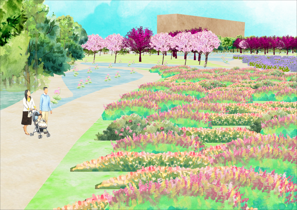 Through the insertion of flower shrublands and seasonally flowering tropical trees, Summer Flower Park serves to encourage users to slow down in life and take some time to appreciate the little things that pop up around them.